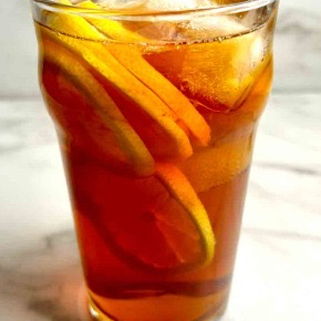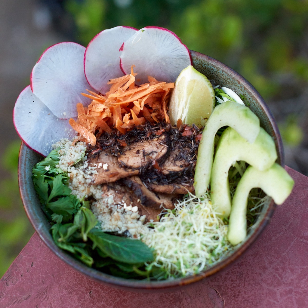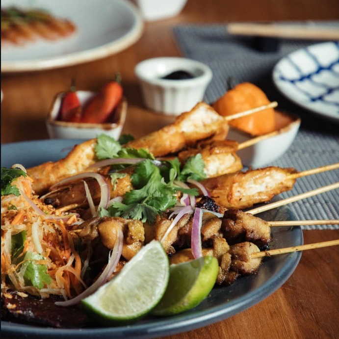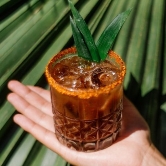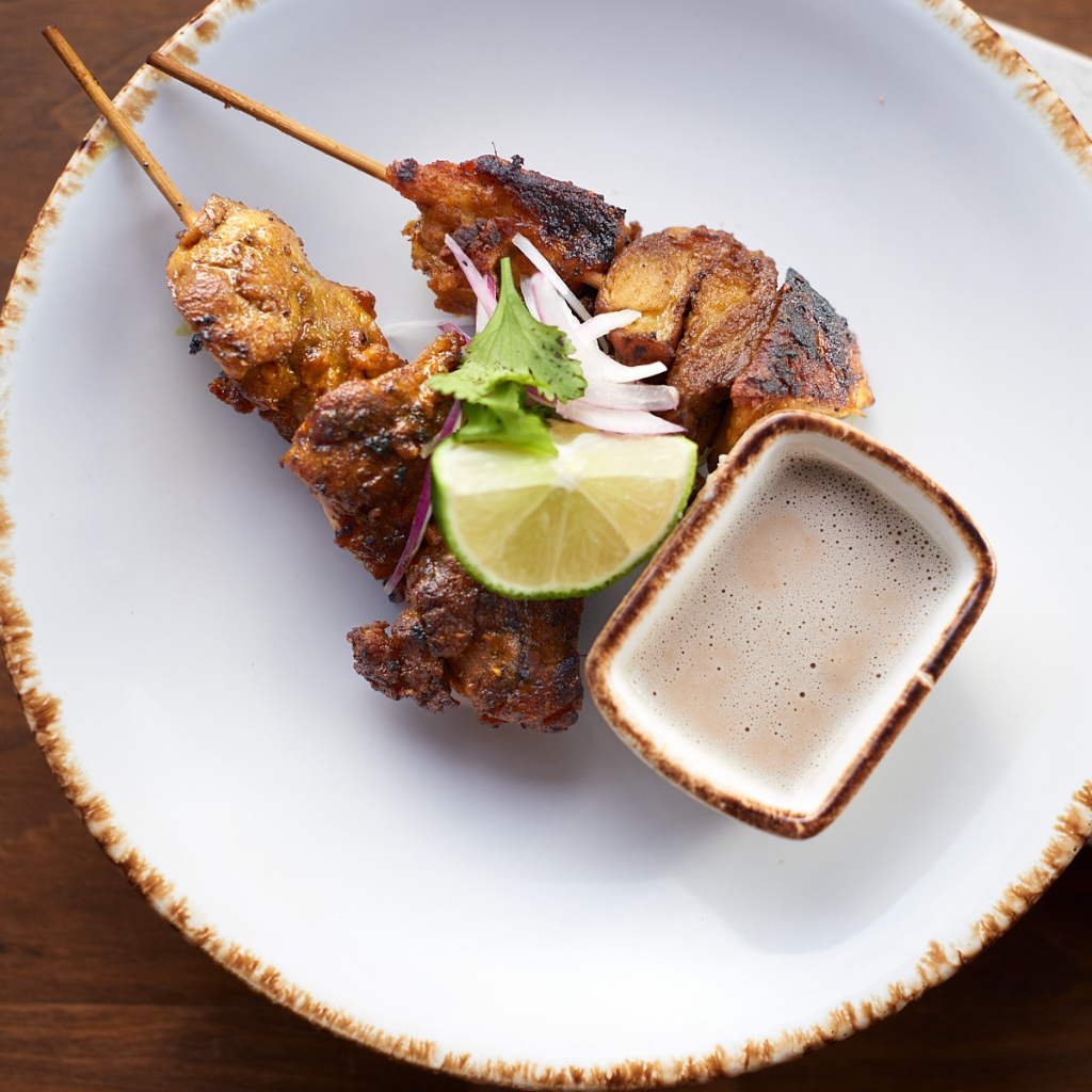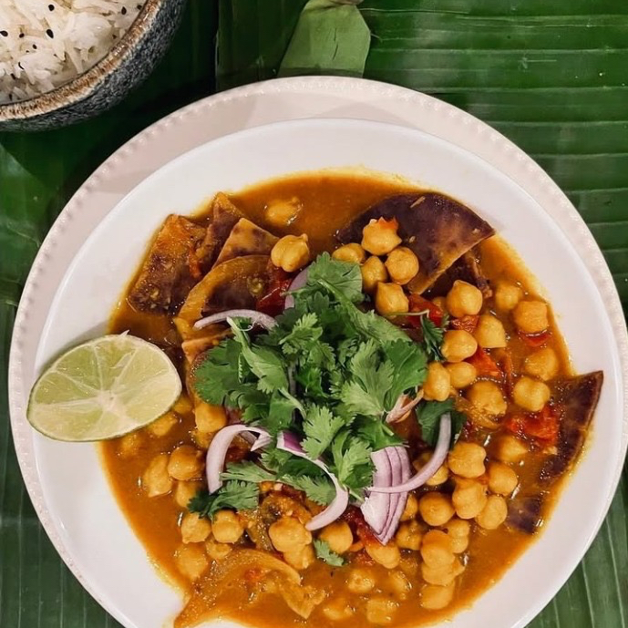 Trozos de pollo en salsa de jitomate y crema servido con arroz bastami